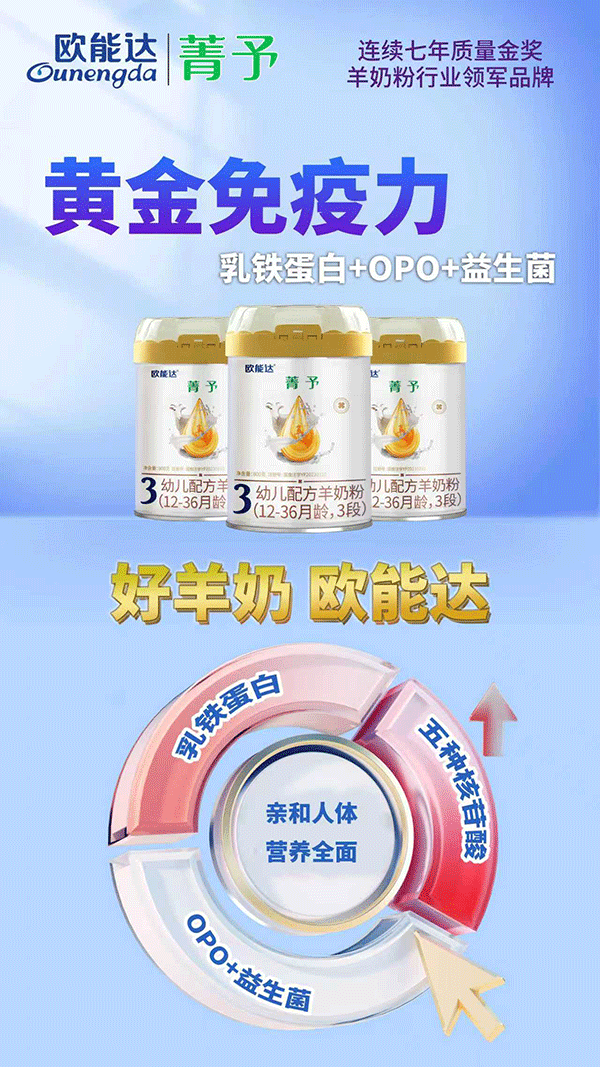 歐能達(dá)菁予羊奶粉安排上~乳鐵蛋白、OPO、益生菌強(qiáng)強(qiáng)聯(lián)合,